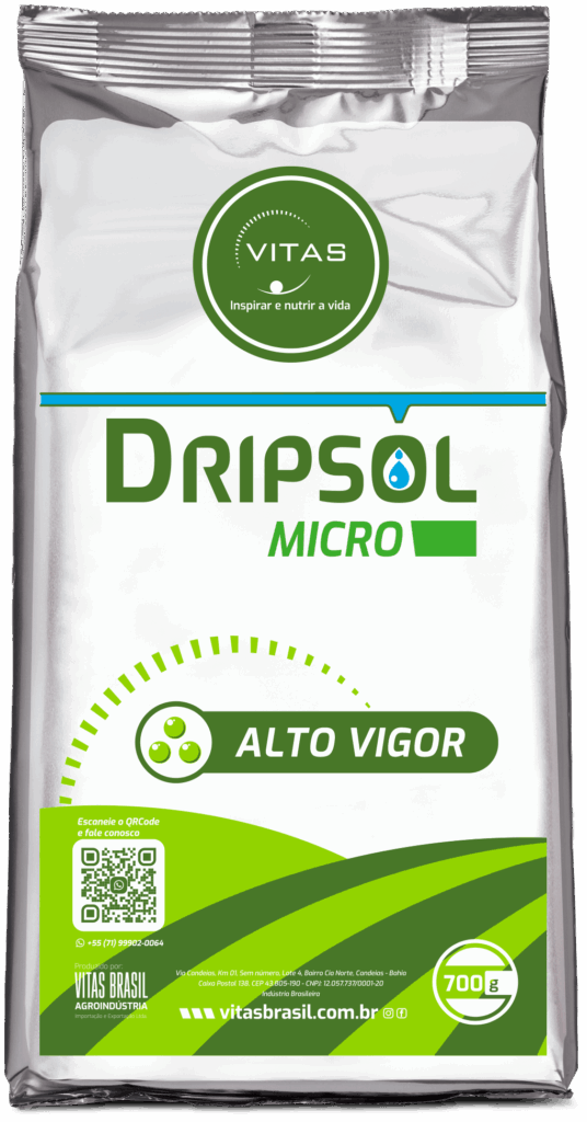 Os micronutrientes são exigidos pelas plantas em menores quantidades, porém sua falta pode gerar grandes perdas na produtividade das culturas, eles desempenham funções variadas e específicas no metabolismo das plantas. Entre os micronutrientes essenciais as plantas estão: Zinco (Zn), Ferro (Fe), Manganês (Mn), Boro (B), Cobre (Cu), Cloro (Cl) e Molibdênio (Mo). Dripsol Micro Equilíbrio, contém um mix de micronutrientes quelatados essenciais para as variadas culturas, sendo um fertilizante indispensável para um programa equilibrado de Fertirrigação, Hidroponia ou aplicações Foliares. A sua formulação é composta por 1,2% (Mg) Magnésio, 0,85 % (B) Boro, 3,4% (Fe) Ferro, 4,2% (Zn) Zinco, 3,2 % (Mn) Manganês, 0,5% (Cu), 0,06% (Mo) Molibdênio, equilíbrio este que proporciona um excelente desenvolvimento às culturas, suprindo suas exigências nestes micronutrientes. Para a horticultura intensiva, a utilização de micronutrientes quelatados é muito importante, pois os produtos apresentam melhor eficiência de absorção em uma maior amplitude e faixas de pH, com compatibilidade de mistura com outros fertilizantes, defensivos ou produtos. Evitando assim problemas de formação de precipitados e a indisponibilidade de nutrientes, pois o quelato envolve os íons protegendo-os para que não ocorra reações indesejadas, seja no tanque de fertirrigação, pulverização ou no solo. Além de serem produtos com alta solubilidade e baixo índice salino não causando salinização dos solos, danos osmóticos e de toxidez nas plantas.